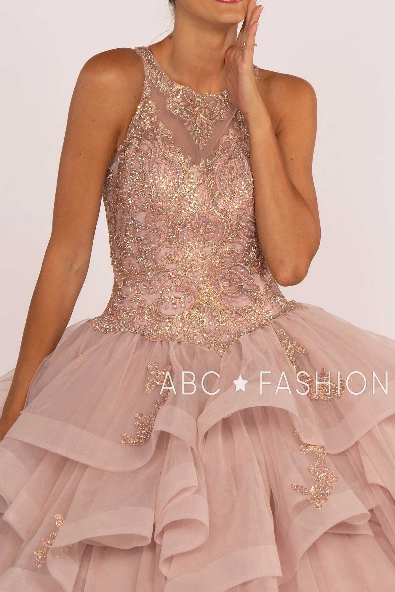 Beaded Illusion Ball Gown with Layered Skirt by Elizabeth K GL2513