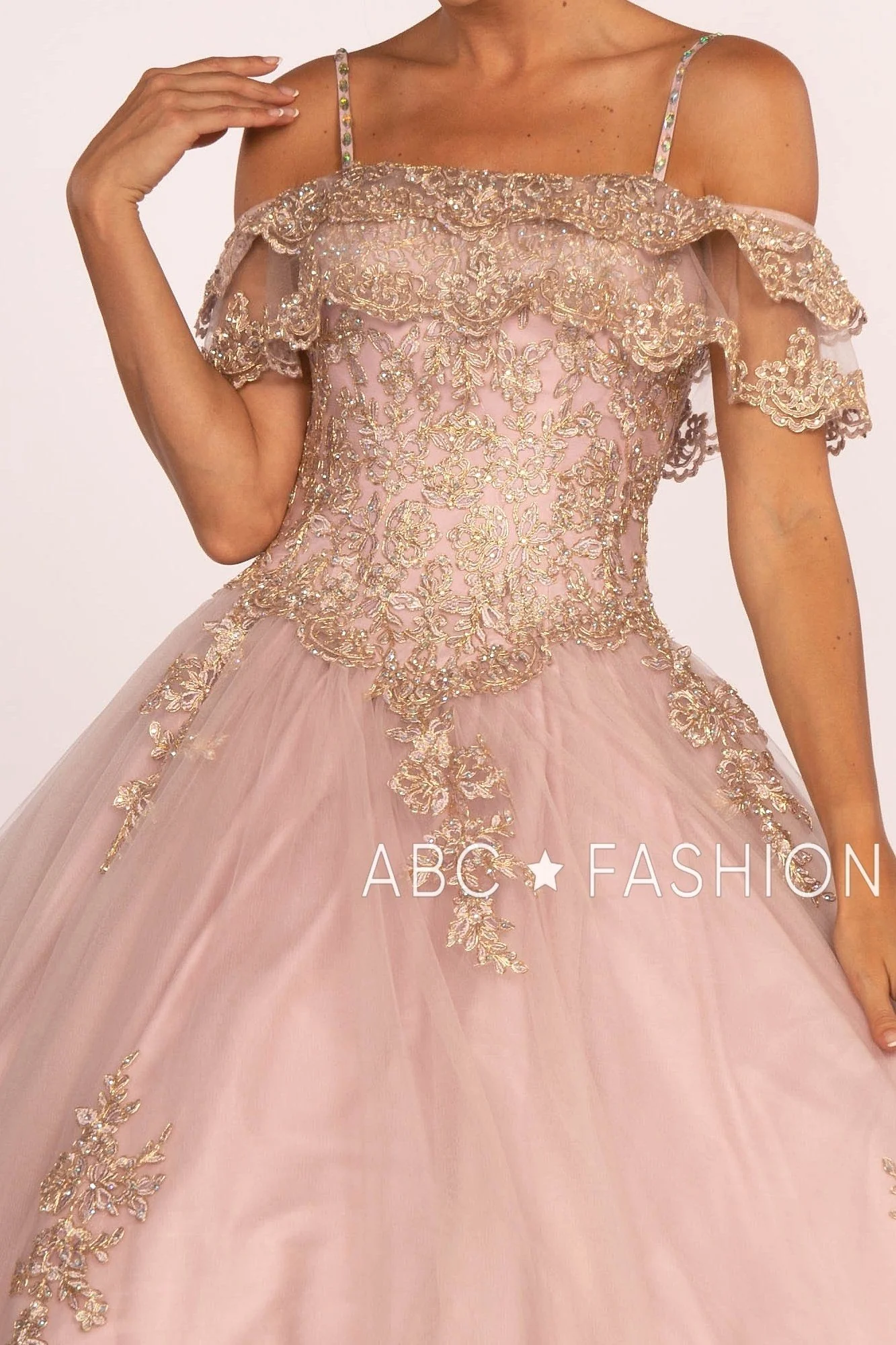 Gold Applique Cold Shoulder A-line Ball Gown by Elizabeth K GL2510