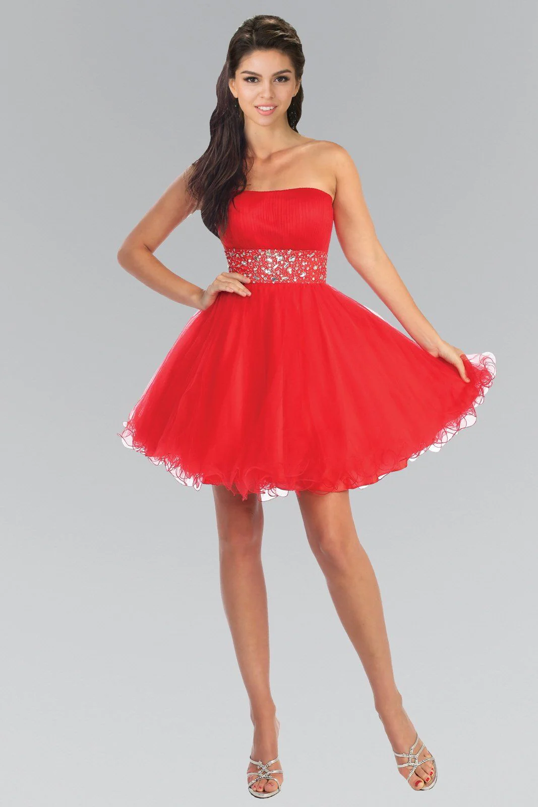 Strapless Short Dress with Jeweled Waistband by Elizabeth K GS1053