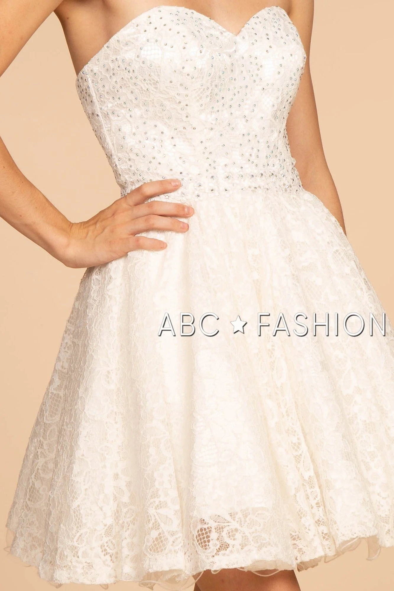 Strapless Sweetheart Short Lace Dress by Elizabeth K GS1611